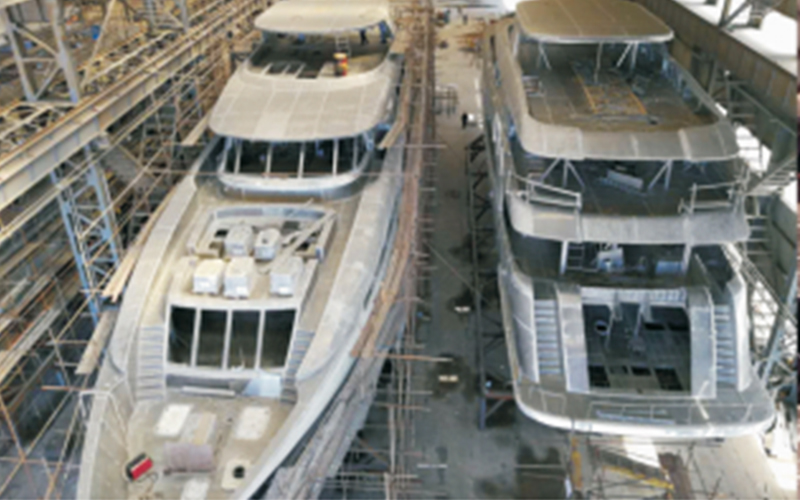 錦龍46米系列游艇船體及上建材料;鋁合金總長:46.48米 型寬:9.08米 型深:2.45米 排水量:290 噸
